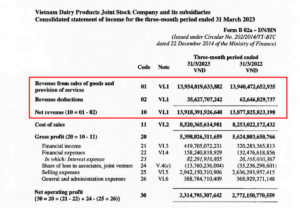 Take a look at the Financial Reports – Vinamilk – the largest dairy company based in Vietnam. As of March 2023, you can find their revenues reported at the beginning of the income statement.