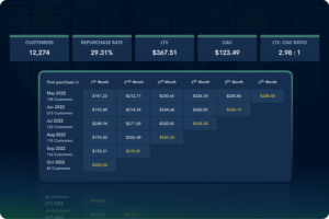 Focus on profitable customers with customer profitability metrics like Customer Lifetime Value (LTV), CAC, LTV:CAC ratio by traffic source, discount codes, countries, etc. |
