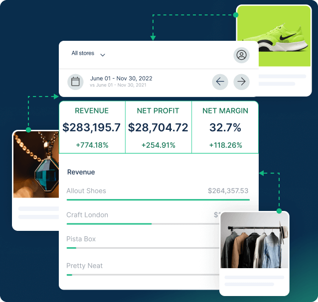 Connect all your Shopify stores with TrueProfit and get a birds-eye view of all your stores’ performance. |
