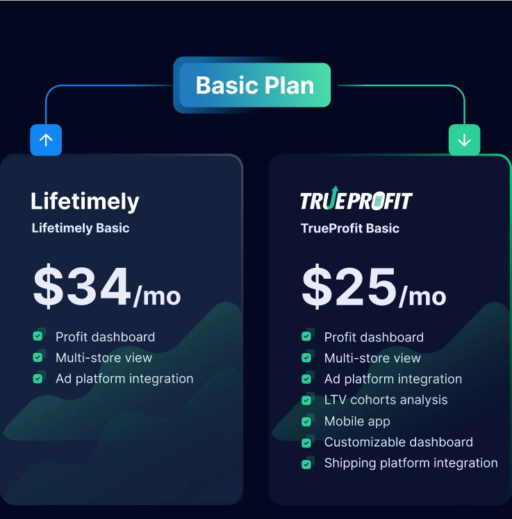 Here’s what we can’t deny: Lifetimely is a robust tool designed for LTV analysis. However, if you need a solid Profit analytics tool with top accuracy and on-point metrics that lead to profitable decisions, TrueProfit offers the best value you’ll ever find.