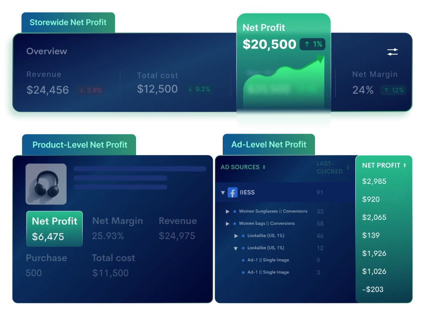 - Instantly know your storewide Net Profit on our real-time dashboard.